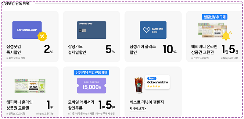 사전구매를 이용하시면, 삼성닷컴 2% 즉시할인 + 삼성카드 5% 결제일할인 = 2 ~ 3만 원대 할인혜택을 받을 수 있어요. 그리고 그 외 더 많은 혜택은 아래 그림을 통해 참조하세요.
